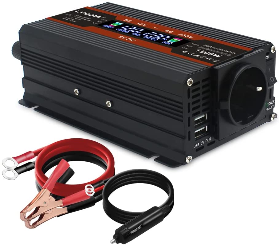 - Seguridad: Inversor de corriente del coche 750W, potencia pico 1500W<10ms, convierte DC 12V a AC 220V.Uso a largo plazo, la tasa de conversión es de 80. Se recomienda utilizar aparatos eléctricos de menos de 600W.