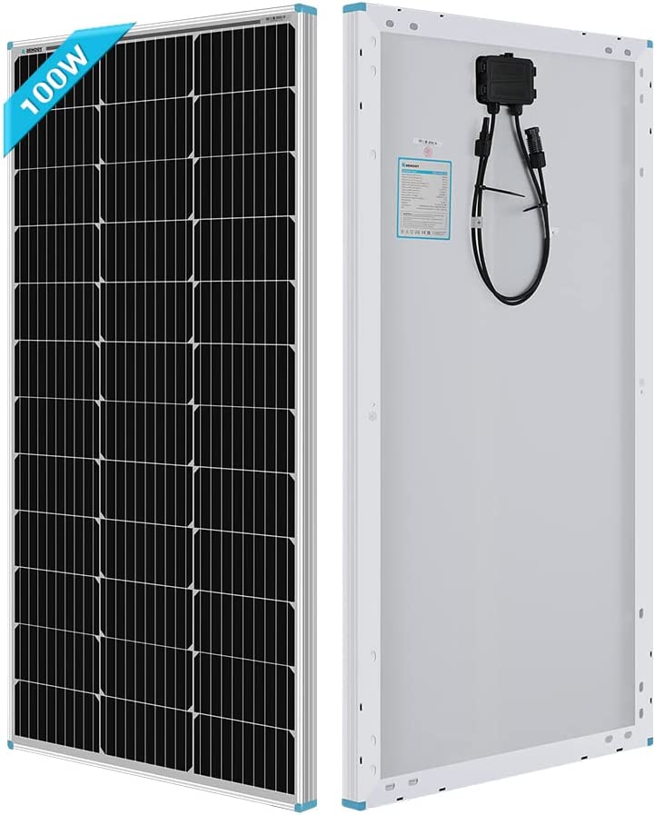 Renogy Placa Solar 12V 100W, Panel Solar Monocristalino, Panel Solar 100W de Alta Eficiencia, Ideal Para Furgoneta, Autocaravana, Casa, Camping, Sistema Fotovoltaico Fuera de La Red