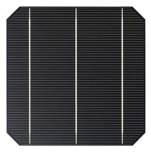 1. Células de Silicio Monocristalino: Son células fabricadas a partir de un único cristal de silicio. Se reconocen fácilmente por su color uniforme y bordes redondeados.
