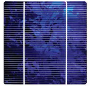 1. Células de Silicio Policristalino (o Multicristalino): Estas células se fabrican a partir de silicio fundido que se ha vertido en un molde. A diferencia de las monocristalinas, estas tienen un aspecto fragmentado, un color azul más oscuro y no tienen bordes redondeados.
